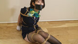 女子校生の制服に白のニーハイソックス+革靴を履いた「夏川梨花」がソファーの上で様々な格好で縛られる!!まずは座った状態で縛られ、口にはボールギャグを噛ませられている。最後は口をテープでふさがれて後ろで手足を縛られ身動きができないように拘束される!!