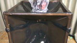 超巨乳のラバードールがラバーマスターの言いなりになりラバーワンピーススカート姿で栓付開口マスクで顔面拘束されて容赦のないイマラチオで責め立てられて、ラバーインナーヴァギナストッキングに履き替えてバイブ責めからのラバーファック。そしてブラックラバースーツに着替えての激しいラバーSEXで最後はゴミの様に扱われる。